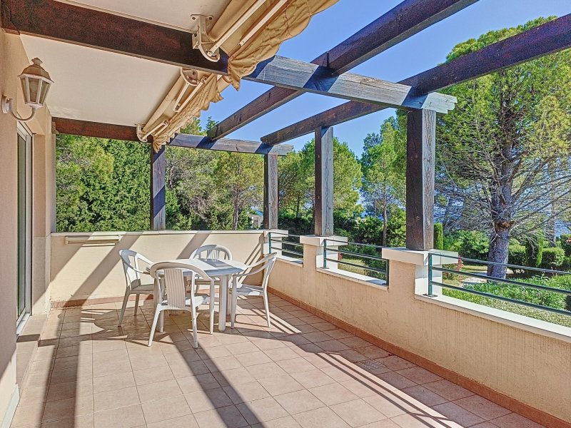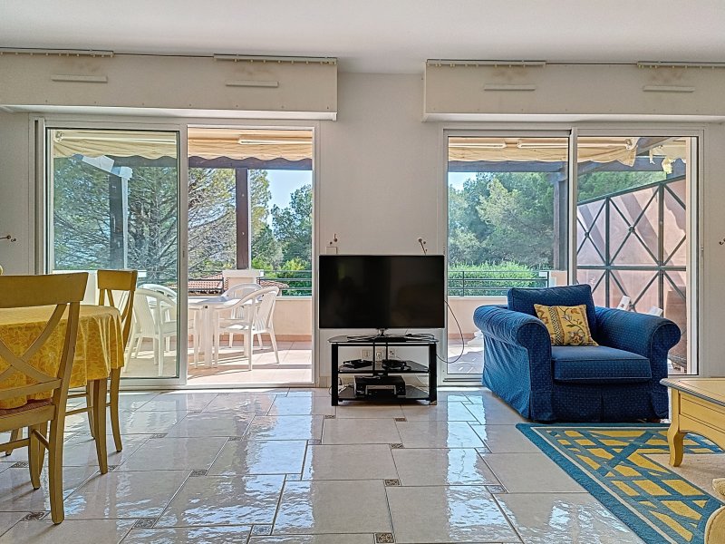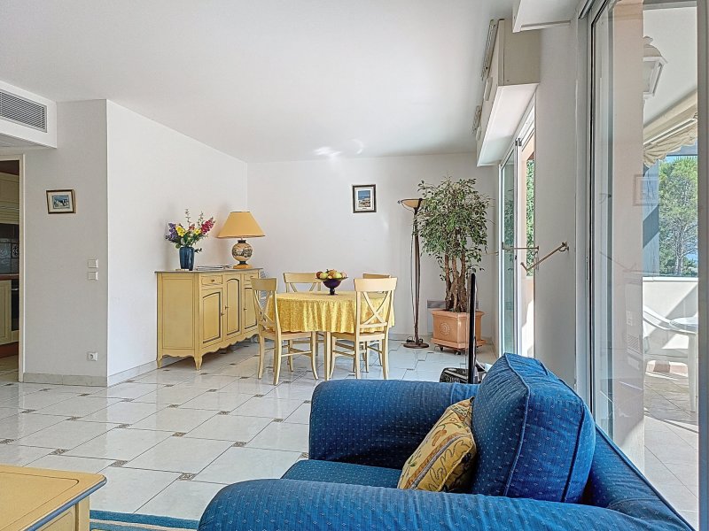 Andélim Agence du Bord de Mer - 04 83 12 13 57. Cadre de villégiature exceptionnel pour ce très bel appartement au premier et dernier étage d'une résidence de standing bénéficiant d'un magnifique parc avec 2 piscines, 2 terrains de tennis et gardien. L'emplacement est de premier choix, en face des jolies criques de Boulouris et à quelques minutes à pied seulement du centre du village. L'appartement se compose comme suit : une très confortable pièce de vie donnant par ses deux grandes baies vitrées sur une terrasse de 21m2 exposée Sud avec vue sur le parc et la mer, une cuisine séparée entièrement équipée, deux belles chambres avec placard dont une avec salle d'eau privative, une salle de bains avec WC, un cellier et des toilettes invitées. Possibilité d'ouvrir la cuisine sur le séjour et/ou de créer un T4 - volumes généreux - nombreux rangements. Un garage de 15m2 complète cette offre.