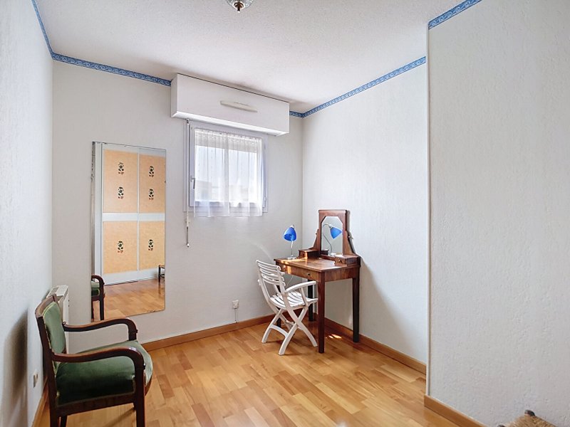 L'appartement offre une entrée accueillante, un vaste séjour de 28 m² idéal pour recevoir, deux chambres confortables, une cuisine indépendante équipée, une salle d'eau moderne et des WC séparés. Le confort est assuré toute l'année grâce au chauffage individuel et à la climatisation réversible. Les fenêtres PVC double vitrage et les volets roulants garantissent une excellente isolation.