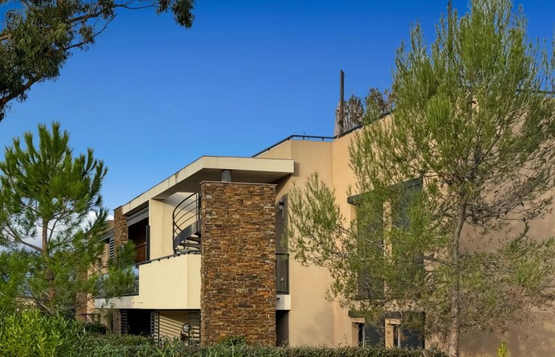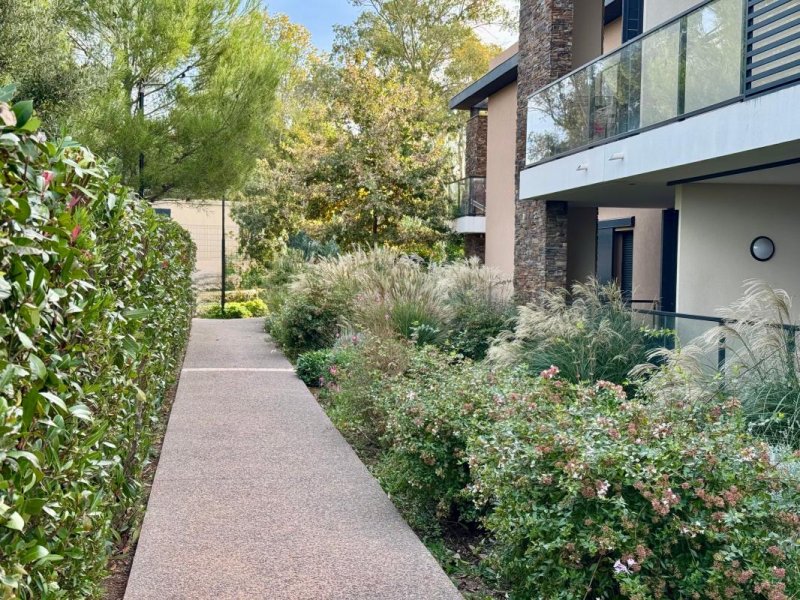 Résidence récente avec piscine et parc arboré.