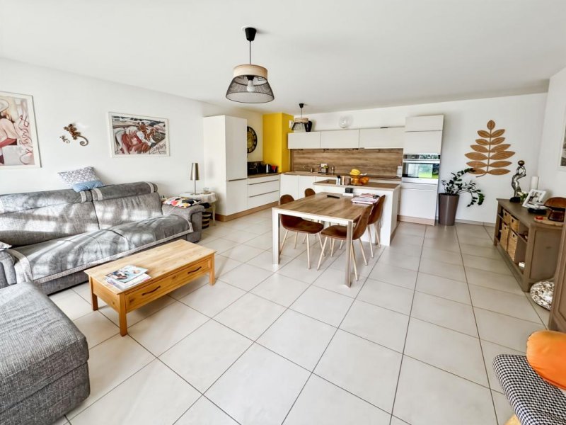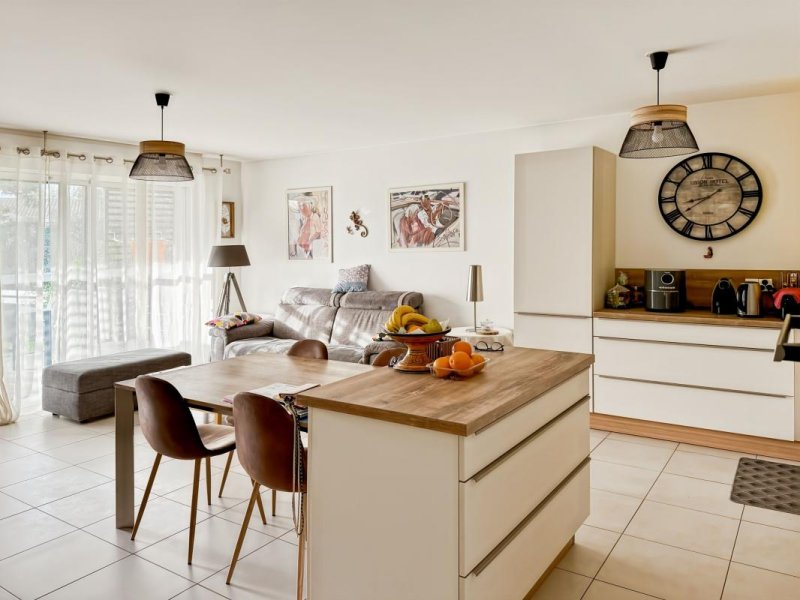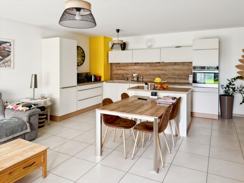 Un espace de vie moderne avec séjour-cuisine de 33m², double vitrage, garage sécurisé et place de parking extérieure.