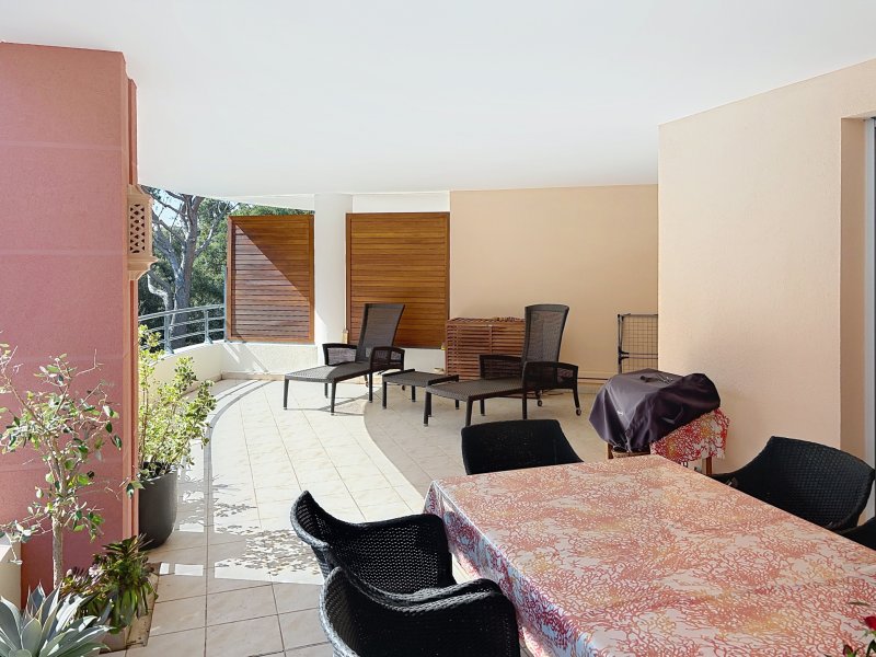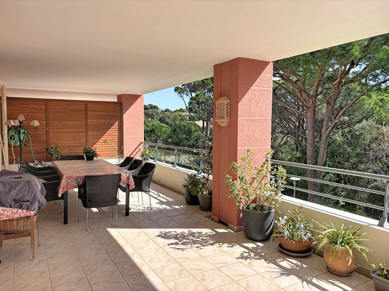 Andelim Agence des Golfs 04 83 120 626 Dans le quartier prisé de Valescure, au coeur des Golfs et à quelques minutes des plages et du centre de Saint-Raphaël, découvrez ce superbe appartement contemporain niché au sein d'une résidence de standing avec piscine, aux prestations raffinées et à l'environnement verdoyant. Ce 3 pièces de 90 m2, baigné de lumière, séduit dès l'entrée par ses volumes généreux et son atmosphère apaisante. Le séjour spacieux s'ouvre sur une superbe terrasse plein sud de 46 m2, véritable prolongement de l'espace de vie, idéale pour recevoir ou se détendre face à la nature. La cuisine hautement équipée, alliant design et fonctionnalité, complète cet espace convivial. L'appartement dispose de deux belles chambres avec rangements intégrés, dont une suite avec salle d'eau privative, ainsi qu'une salle de bain supplémentaire et un toilette indépendant. Place de Parking intérieur et un garage fermé complète ce bien