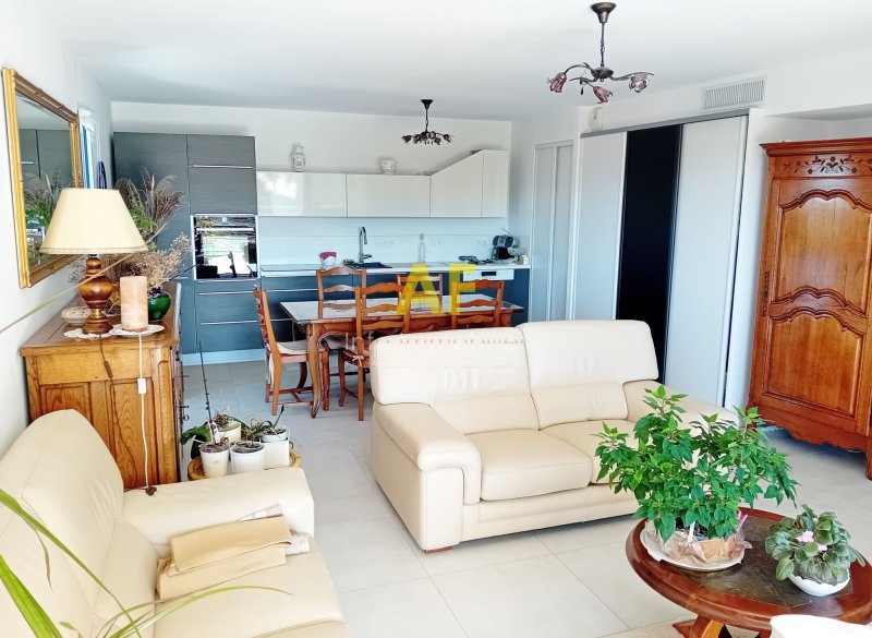 SAINT RAPHAEL BOULOURIS : Dans une résidence proche des plages et du centre de Boulouris, appartement de type trois pièces 71 m2 en étage comprenant : Entrée, séjour avec cuisne ouverte donnant sur une vas terrasse de 23 m2, wc, deux chambres, salle d'eau avec wc. Des prestations de choix, garde-corps en verre, baies vitrées en aluminium vous apporteront plus de lumière, les dernières innovations en terme de confort et de sécurité, des climatisations réversibles dernière génération, un ascenseur et un garage sécurisé par un portail automatique. Cette résidence récente est un véritable coin de paradis à deux pas des commerces et des plages ! Copropriété comprenant 15 lots principaux d'habitation. Charges courantes : 1650 EUR / an RETROUVEZ toutes nos annonces de biens à la vente, à la location à l'année, à la location de vacances ainsi que nos actualités directement sur notre site : www.af-immobilier.fr