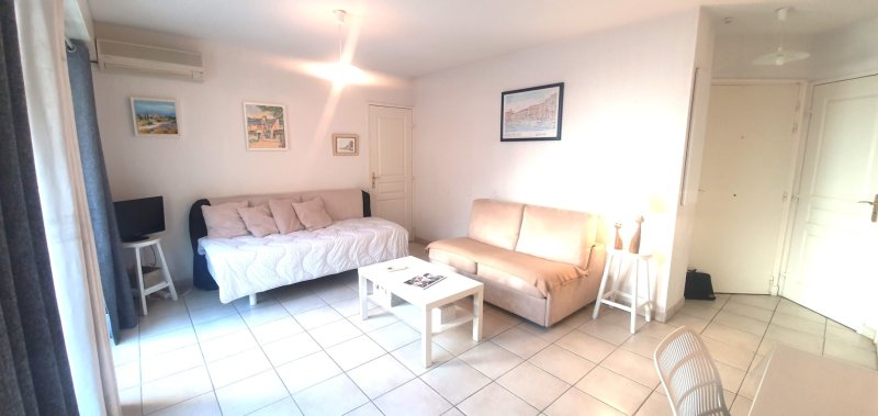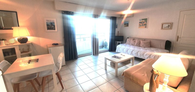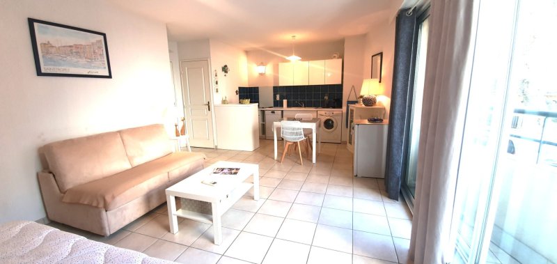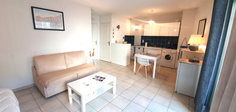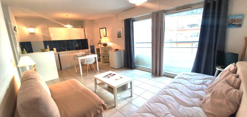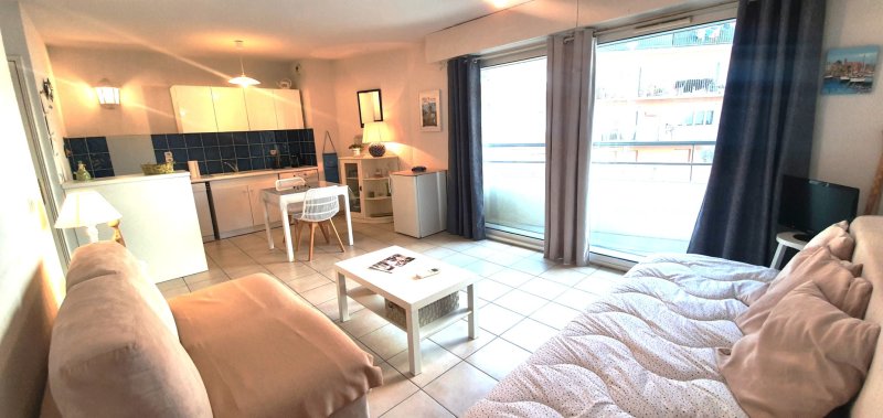 Bel appartement type studio de 30 m2 + balcon, idéalement placé dans le centre ville. Grande pièce de vie de 23 m2, cuisine américaine toute équipée, une salle d'eau, toilettes séparées, placards. Tous commerces et plages à pied. Résidence récente, faibles charges de copropriété. A voir absolument.