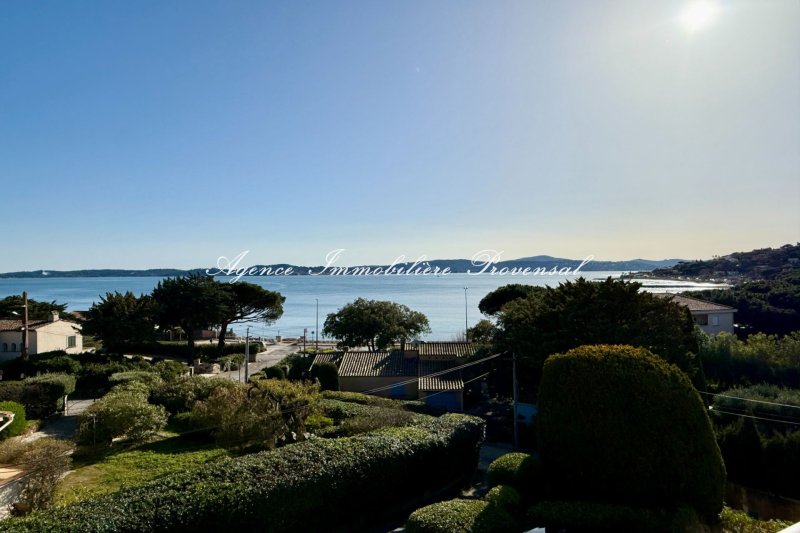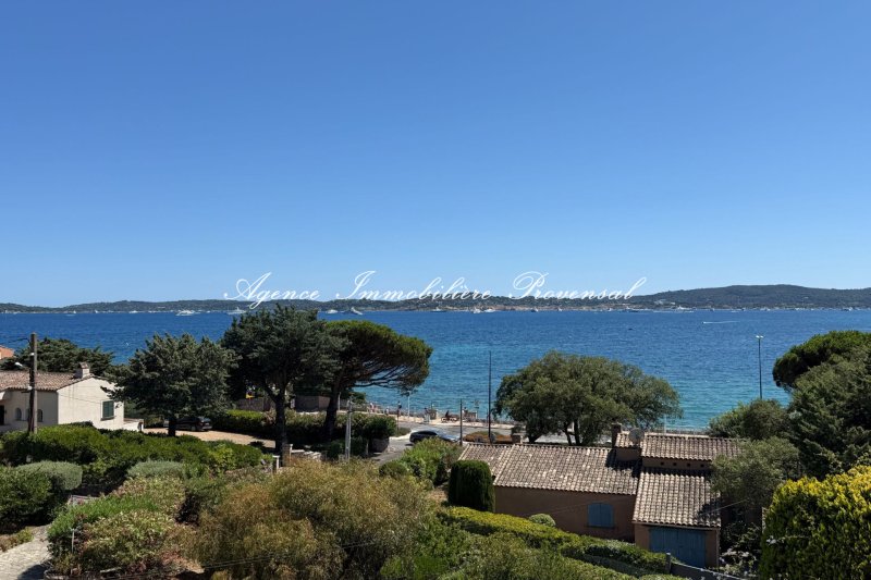 Vue mer panoramique sur le Golfe et Saint-Tropez, Terrasse de 16 m² face à la mer, Emplacement idéal à proximité de la plage et du centre-ville, Climatisation, cheminée et garage inclus.