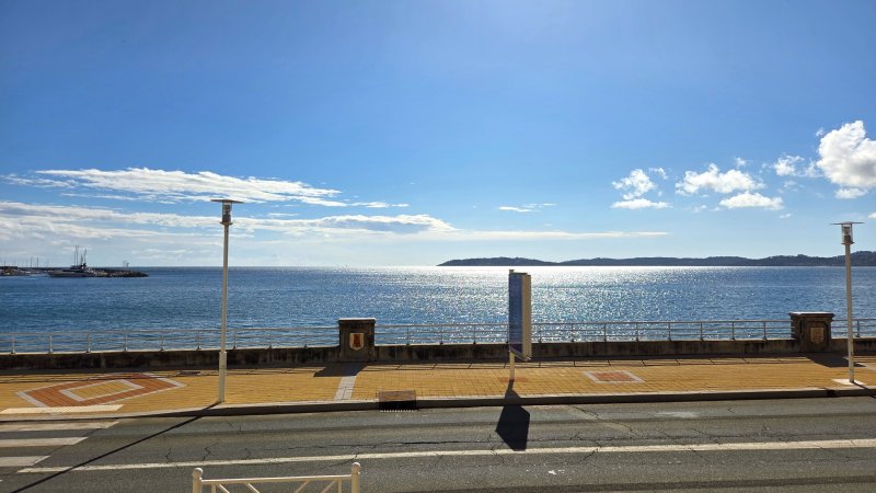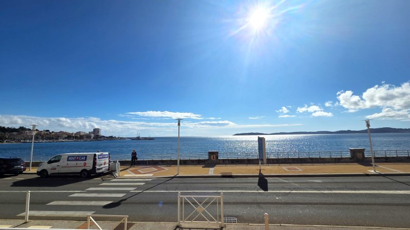 Sainte Maxime au pied des plages, bel appartement type F3 de 58 m2 + terrasse de 18 m2 vue mer panoramique. Il comprend, une entrée, séjour ouvrant sur terrasse vue mer, deux chambres dont une ouvrant sur terrasse, une cuisine indépendante avec loggia, une salle d'eau, toilettes séparées. Place de parking couverte à l'intérieur de la résidence. Plages et commerces à pied. Exposition plein sud.