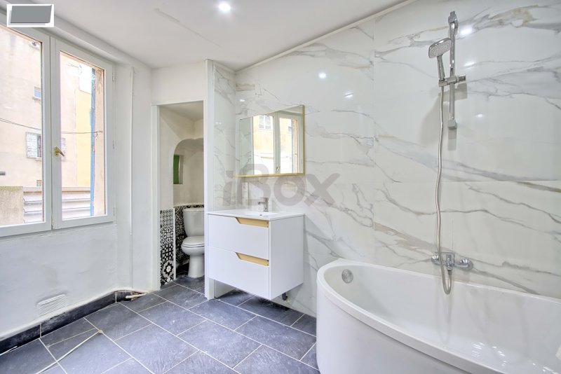 TOULON - PLACE D'ARMES Idéalement situé sur la place d'armes, appartement traversant d'une superficie de 40m2. Il se compose d'une grande entrée, séjour avec cuisine ouverte équipée, salle de bains avec wc. Appartement climatisé entièrement rénové!