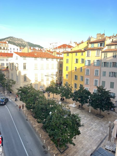 Toulon Centre Ville Dans une copropriété bien entretenue, Spacieux T2 rénové de 45.70 m2 avec vue sur place. Grande pièce de vie avec cuisine ouverte, chambre séparée avec fenêtre, salle d'eau avec wc et fenêtre.