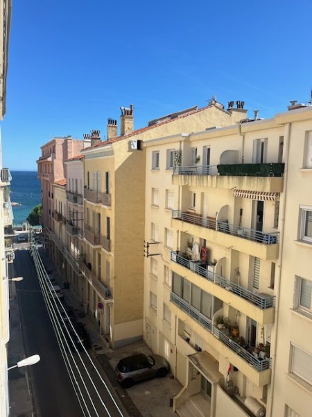 TOULON, Le Mourillon, emplacement exceptionnel à 50m des plages pour ce vaste T2 traversant de 50m2 composé d'un séjour avec cuisine ouverte, 1 grande chambre, salle d'eau et WC séparés. Une cave en sous sol vient compléter de bien rare et idéalement situé.