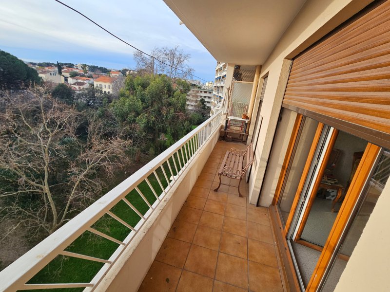 Toulon - Quartier Aguillon, sans vis à vis, appartement T3 au 4ème étage avec ascenseur et présence d'un gardien/concierge au sein de la résidence. L'appartement est composé de deux chambres dont une avec placard, un salon/séjour donnant sur une terrasse exposition SUD/EST, une cuisine séparée ouvrant sur un balcon exposition NORD comprenant une plaque cuisson gaz, une salle de bain avec fenêtre oscilobattant double vitrage puis porte d'entrée blindée, Dans la copropriété, vous pourrez profiter d'un parking collectif fermé, d'un parking commun 2 roues. Tableau électrique refait, 2 placards dans l'entrée, une cave privative de 4m2 en sous-sol, réfection cage d'escalier et installation caméra dans le bâtiment votées et payées. Charges trimestrielles de 430EUR comprenant chauffage collectif, gardien/concierge, ascenseur, entretien parties communes. Appartement à rafraîchir