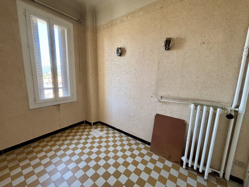 TOULON CASTIGNEAU - Dans une copropriété bien tenue, à deux pas du centre ville et de l'arsenal, un appartement de type 3 d'environ 84m2 au 7e etage de l'immeuble, comprenant une entrée, un salon-séjour qui donne sur un balcon (vuer mer), 2 belles chambres d'environ 12m2 chacune, une cuisine séparée, une salle d'eau, un WC, une petite pièce annexe d'environ 5m2 (bureau-dressing)