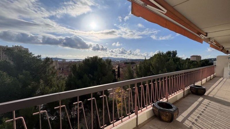 À vendre à TOULON secteur Haut Claret / Bas Faron. Appartement Type 4/5 d'une superficie de 120 m2 situé au sein d'une résidence calme, sécurisée et parfaitement entretenue, cet appartement traversant Nord/Sud se trouve au 4e étage avec ascenseur. Il se compose d'un spacieux salon/séjour lumineux de 43 m2, donnant sur un grand balcon de 26 m2 avec vue mer / vue Faron, de trois chambres avec la possibilité d'en créer une quatrième, d'une cuisine séparée avec arrière-cuisine, d'une salle d'eau rénovée, d'une salle de bain avec WC, d'un WC indépendant ainsi que d'un dressing offrant de nombreux rangements. Le bien est complété par une place de parking privative en sous-sol et d'une cave de 4,3 m2. Plusieurs places de stationnement collectives sont également disponibles au sein de la copropriété. Appartement lumineux, aux beaux volumes, offrant un fort potentiel d'aménagement, idéalement situé à proximité des commodités, des axes principaux et des espaces naturels du Faron.
