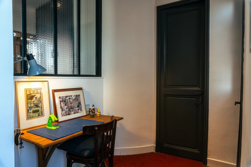 Vous apprécierez également les grandes fenêtres typiques, les sols en tomettes et l’atmosphère chaleureuse qui donnent à ce bien un caractère unique.