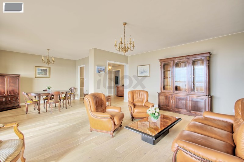TOULON Quartier Claret Dans une résidence de standing sécurisée avec gardien, un appartement de 6 pièces situé au 5e étage avec ascenseur de 127,15 m2 Loi Carrez (154,35 m2 habitables), qui offre des volumes généreux et un agencement fonctionnel. L'entrée en étoile distribue un vaste séjour de 38 m2, prolongé par une terrasse fermée offrant une vue dégagée sur le centre-ville et la rade de Toulon, une cuisine indépendante aménagée qui bénéficie également d'une seconde loggia. L'espace nuit comprend quatre chambres, une salle d'eau, une salle de bains avec WC, un cellier et des toilettes séparées. De nombreux placards sont également présents. L'appartement, sans vis-à-vis et orienté Sud-Ouest, séduit par sa luminosité, son excellent état général et sa situation recherchée à proximité des commodités. Possibilité d'acquérir en sus un box fermé en sous-sol.