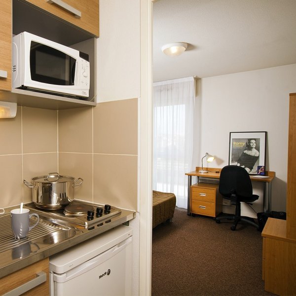 Résidence moderne, elle propose des appartements entièrement meublés et équipés disposant d'une salle de bain privative ainsi qu'une kit