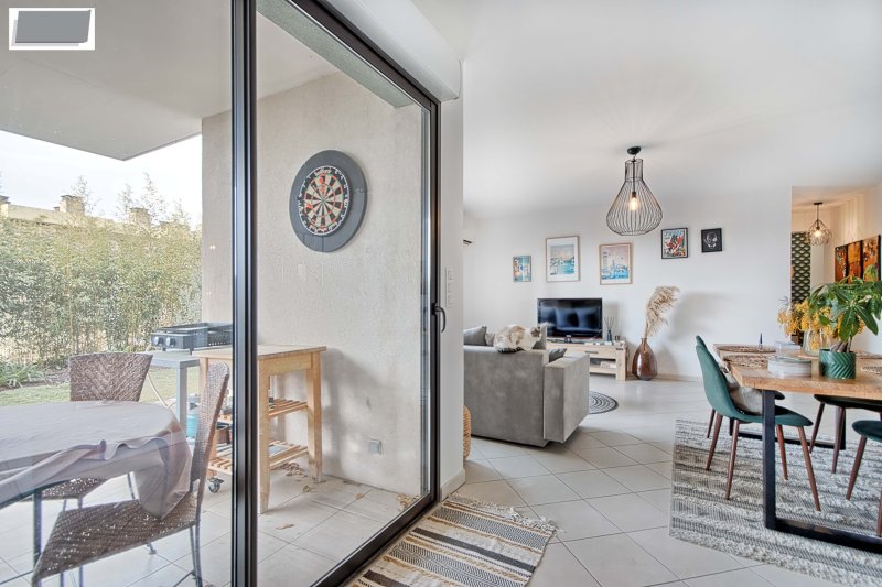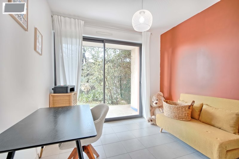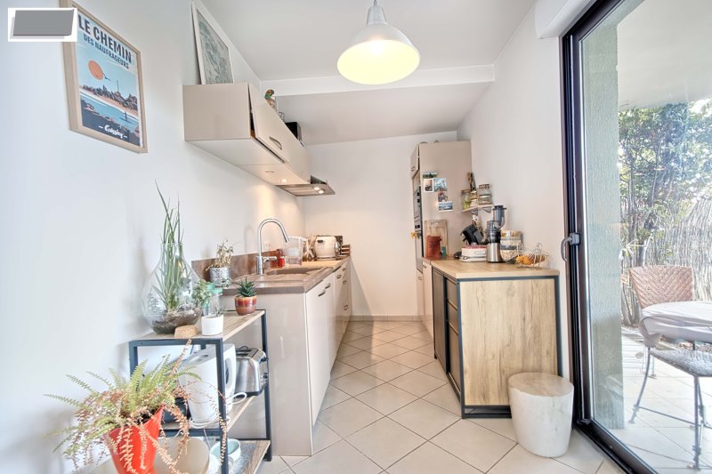 Toulon Faron, appartement T3 de plus de 71m2 en excellent état en rez de jardin plein sud avec aperçu mer.  Entrée desservant un bel espace à vivre avec cuisine US aménagée équipée de 35m2, 2 belles chambres avec dressing, salle de bains, WC.  Toutes les pièces ont accès sur terrasse bois ombragée de 20m2 et jardin paysagé d'environ 110m2.  Garage avec accès direct dans l'appartement, parking privatif et cave.  A voir rapidement