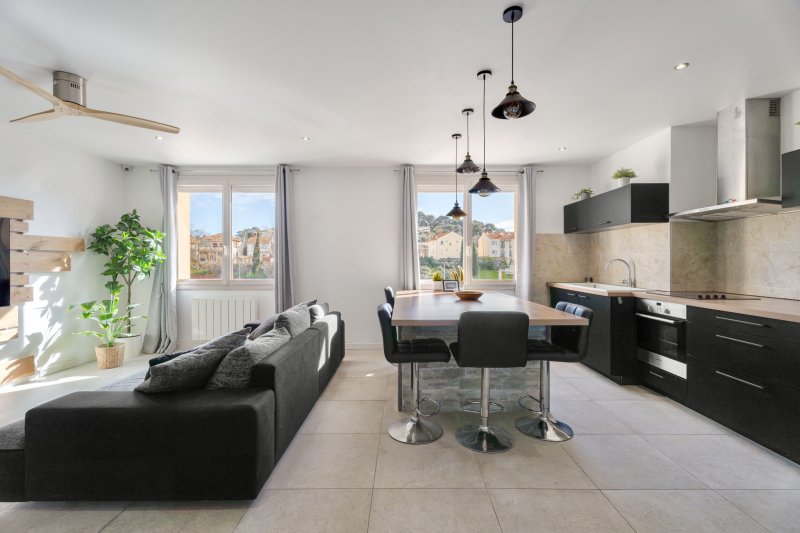 Venez découvrir ce bel appartement Type 3 de 66 m2, situé offrant un cadre de vie agréable, lumineux et moderne. Dès l'entrée, vous serez séduit par une pièce de vie spacieuse et conviviale, avec un espace salon chaleureux et une cuisine ouverte contemporaine entièrement aménagée et équipée. L'ensemble bénéficie d'une belle luminosité grâce aux grandes ouvertures. L'appartement dispose de deux chambres confortables, idéales pour une famille, un couple ou un espace bureau. La salle d'eau moderne avec douche à l'italienne apporte confort et fonctionnalité. En très bon état général, ce bien ne nécessite aucun travaux : vous n'avez plus qu'à poser vos valises ! Les informations sur les risques auxquels ce bien est exposé sont disponibles sur le Géorisques : www.georisques.gouv.fr