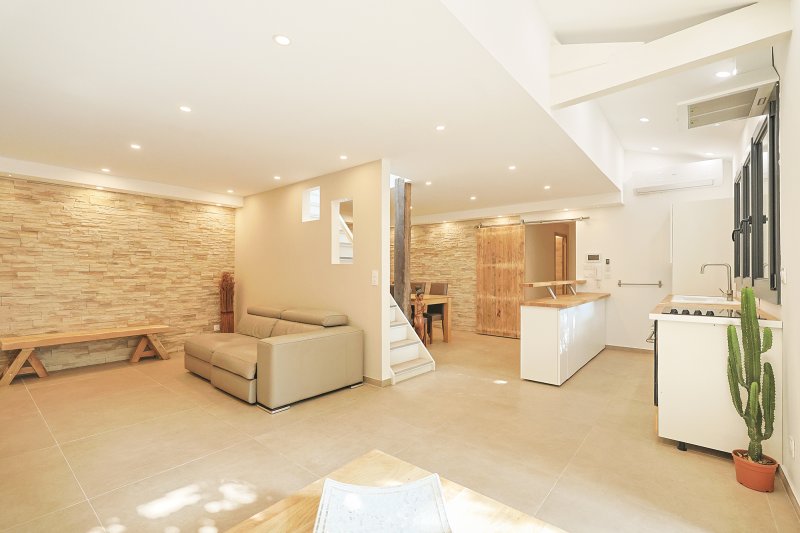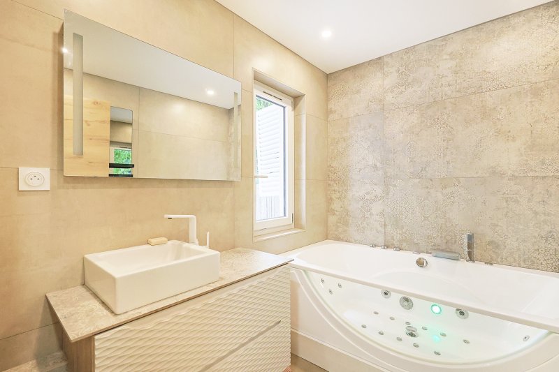 Toulon Ouest - JCG IMMO vous propose en exclusivité ce magnifique duplex T4 115,26 m2 (82,54 m2 loi Carrez) + JARDIN 60 m2 En rez-de-jardin, entièrement refait à neuf, alliant le confort du plain-pied, des prestations haut de gamme. 3 chambres/3 salles de bain/d'eau. Une rénovation complète tous corps d'état a été menée avec soin, pour un rendu contemporain, chaleureux et fonctionnel. DESCRIPTION : Au rez-de-chaussée, une vaste pièce de vie de 41 m2 s'ouvre sur le jardin par de larges baies vitrées, offrant une belle luminosité. Une cuisine ouverte sur le salon, mis en valeur par un éclairage intégré, crée une atmosphère chic et chaleureuse. Toujours de plain-pied, une chambre parentale avec salle d'eau privative, une salle de bain balnéo et un WC indépendant. Un espace mezzanine a été optimisé pour le rangement. À l'étage : deux chambres et une salle d'eau avec WC avec des volumes optimisés L'EXTÉRIEUR : Le jardin privatif d'environ 60 m2 est un véritable havre de paix. Un figuier préserve l'intimité et un mandarinier apporte une touche de couleur. En plus ! Deux caves de 10 m2 et 3 m2 en sous-sol. Idéalement situé dans un secteur résidentiel de Toulon Ouest, proche des commerces, écoles et transports, à 15 min à pied de la gare TGV de Toulon. Petite copropriété, faibles charges Un bien rare sur le secteur. PRESTATIONS: Diagnostics énérgétiques en B o Climatisations réversibles o 2 visiophones et fibre optique installés o Volets roulants éléctriques NOTRE AVIS : Un bien rare et complet, où chaque détail a été pensé pour le confort quotidien. La situation idéale, la qualité de la rénovation et ce jardin intimiste au calme font de ce rez-de-jardin un véritable coup de coeur. Idéal pour une résidence principale ou secondaire. Le prix affiché inclut les honoraires d'agence. Leslie GUIBERT Immatriculée au RCS sous le no 512 302 431 RSAC Toulon No de police d'assurance : MMA IARD 775652125MMA