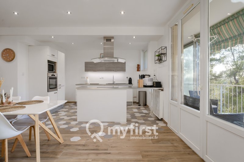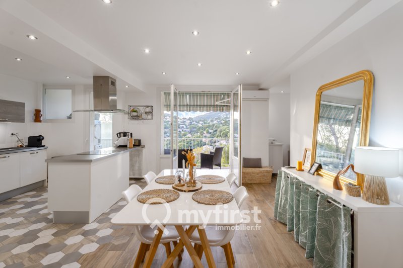 Entre Toulon et Le Revest, un appartement suspendu entre ville et nature Il est de ces lieux où l'on sent tout de suite que le temps s'écoule autrement. Sur les pentes du Faron, là où Toulon s'ouvre sur la nature et frôle la commune du Revest-les-Eaux, cet appartement dévoile un art de vivre rare : celui de la douceur, du calme, et du goût juste. La copropriété, bâtie dans les années 70, respire la solidité et le soin. Ravalée, fermée, sécurisée -- elle veille sur ses habitants comme un écrin préservé, entouré de verdure et de lumière. À l'intérieur, tout a été pensé, refait, repensé. Près de 70 m2 d'élégance et de simplicité, un 'faux T4' devenu vrai cocon. Le double séjour s'étire avec aisance, baigné d'une lumière changeante au fil de la journée. Le sol, un subtil mélange de tons beiges et gris façon tomettes contemporaines, lie la cuisine au salon dans une continuité naturelle. La cuisine, justement, joue la carte du charme et de la fonctionnalité. Entièrement équipée, elle mêle modernité fonctionnalité, et ce petit quelque chose d'authentique qui donne envie d'y préparer un café en écoutant la radio du matin. Les deux chambres s'ouvrent sur un balcon, intime et tranquille. Dans la salle d'eau, le bleu profond dialogue avec le bois -- comme un clin d'oeil à la mer toute proche et à la chaleur du sud. Mais c'est depuis la terrasse, d'un peu moins de dix mètres carrés, que la magie opère. Une vue dégagée, vivante, sur la montagne et la végétation. Le soir, le soleil se couche derrière les collines et inonde l'espace d'une lumière dorée. Un moment suspendu, presque méditatif. Une buanderie a trouvé sa place discrètement sur la terrasse, à l'abri, tandis qu'à l'intérieur, la climatisation et les menuiseries récentes assurent le confort du quotidien. L'appartement dispose en outre d'une cave et d'une place de stationnement privative. Ici, on vit dans un équilibre rare. La ville n'est jamais loin, mais la nature, elle, est partout. Et chaque détail semble avoir été pensé pour que l'on s'y sente bien -- simplement, durablement, sereinement.