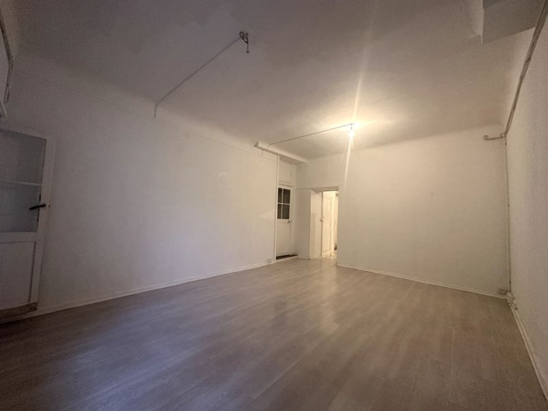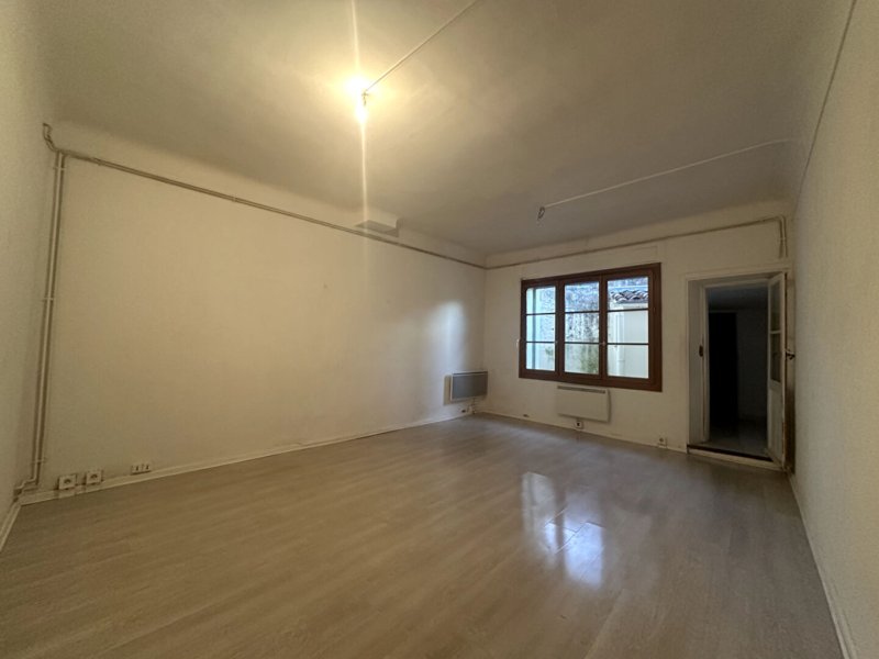 Bel espace de vie spacieux avec cuisine ouverte aménagée, une grande chambre de 23m2, une buanderie avec un accès à une cour privative et une salle d'eau avec WC.