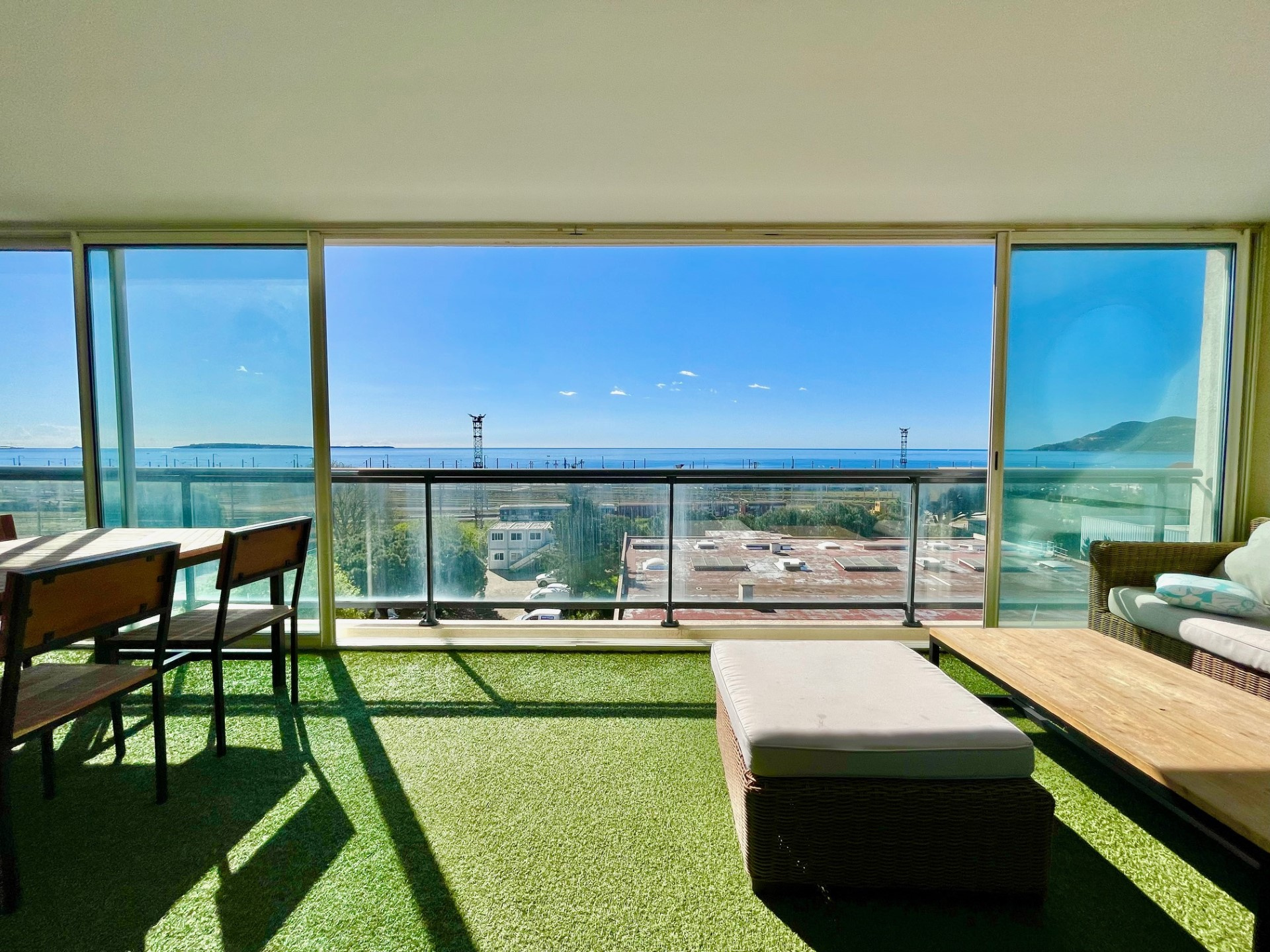 Appartement type 2 de 44.82 m2, situé au 5ème étage exposé au Sud comprenant séjour avec cuisine, chambre, salle d'eau avec WC + dressing + Balcon de 12.00m + cave