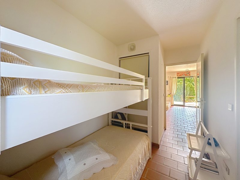 Venez découvrir ce charmant appartement vendu entièrement meublé est situé au sein dans une petite copropriété calme, il bénéficie d'un emplacement privilégié et exceptionnel à quelques pas des plages ( 2 minutes à pieds) et des commerces, ce studio traversant bénéfice d'un joli jardin méditerranéen et d'une terrasse exposée Sud-Ouest. Le bien de 30.49 m2 habitable se compose d'un lumineux séjour avec placard, d'une cuisine ouverte, d'un coin cabine avec un lit superposé, d'une salle de bains avec WC. Vous serez séduit par le jardin et son aperçu mer. De plus, une place de parking privée vient parfaire l'ensemble. A visiter sans plus tarder, rare sur Cavalaire.