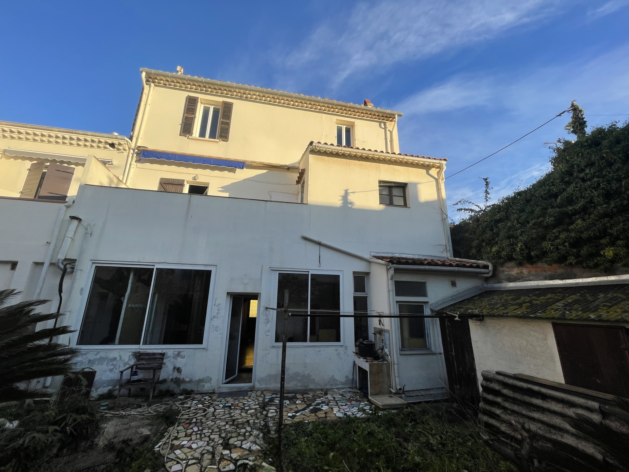 LA SEYNE SUR MER PROCHE ENTRE CENTRE VILLE ET PORTE MARINE - Immeuble comprenant deux T1 traversants à rénover en rez de chaussée, à l'étage un séjour avec cheminée, une cuisine indépendante avec terrasse, une suite parental pouvant être aménagé en un grand T2, au second étage 4 chambres, une salle d'eau avec wc pouvant être aménagé en un T3. Acquisition d'un garage possible en supplément. Parcelle de 256m2 avec dépendances.