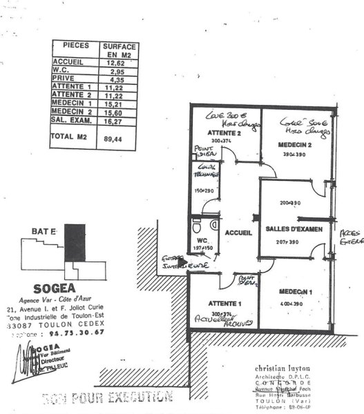 Exclusivité La Garde proche centre ville, local médical d'environ 90 m2 sans charge de copropriété Local partiellement loué avec accès par rue ou par hall d'entrée. 4 'locaux' distincts dont dont 2 avec fenetres, WC indépendants, local informatique. 2 des 4 'locaux' sont actuellement loués avec pour un revenu locatif de 800EUR mensuel hors charges. Potentiel locatif envisageable entre 1300 et 1600EUR mensuel. Parking à proximité A voir rapidement