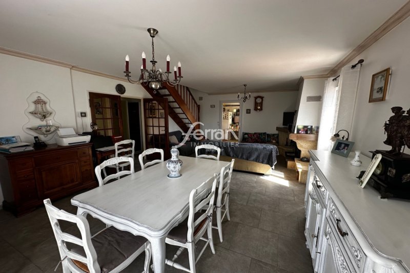 Villa des années 80 construite sur une parcelle de 816m² clôturée et édifiée sur deux niveaux.