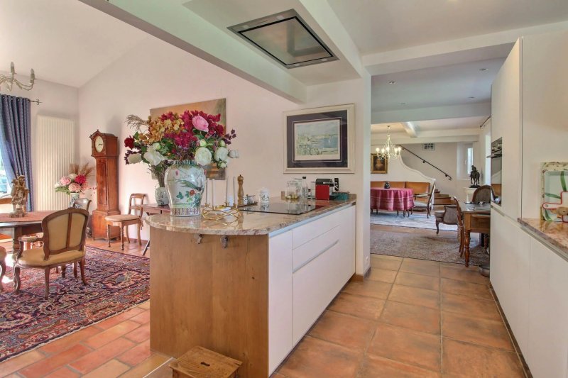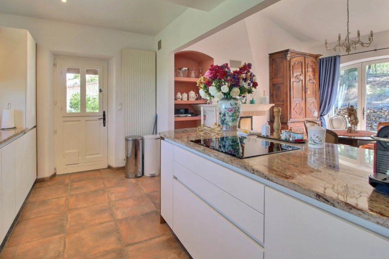 Au rez-de-chaussée, le cœur de la maison s’organise autour d’une cuisine ouverte entièrement équipée avec son arrière cuisine. Dans le prolongement une salle à manger avec cheminée. Un salon indépendant — également doté d’une cheminée — s’ouvre sur une véranda lumineuse, créant des espaces de vie confortables en toute saison. Dans le prolongement naturel de la cuisine, une terrasse couverte offre un cadre idéal pour la vie en extérieur, avec cuisine d’été et espace barbecue et four à pain, le tout bénéficiant d’une vue sur le village et le paysage environnant. Ce niveau comprend également une chambre de maître avec dressing et salle de douche attenante.
