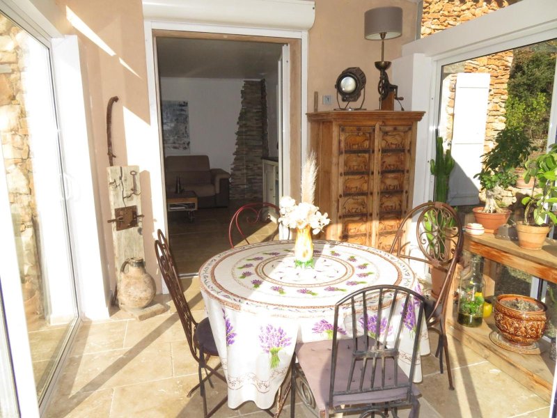 Mazet Coup de coeur ! - EXCLUSIVITE et Coup de COEUR ! Idéal jeune couple ou retraités ou villégiatures! Maison style mas, en campagne ,en pierres de 83m² au sol : véranda de 8m² qui sert de salle à manger , Cuisine équipée ouverte sur salon avec poêle à bois et clim 25m², 1 chambre de 9.5m² avec placard, 1 suite de 14m² avec placard et SDB/wc + mezzanine , sde/wc , Chambre env 9m² avec placard, Dépendance: atelier cadastré de 20m² ,sur 2010 m² de terrain clos en partie , au calme , en campagne. Sa piscine de 10m² , Une jolie terrasse gazebo et un abri-voitures! Fosse sans travaux obligatoires !Double vitrage.Fibre. TF: 856€. Honoraires à la charge du vendeur. Le bien est à vendre par l'intermédiaire de l'agent commercial Maryline FERRY immatriculé au RSAC de Draguignan, sous le numéro 321570806. Montant estimé des dépenses annuelles d'énergie pour un usage standard : entre 670 et 980 euros. Prix moyens des énergies indexés en 2021. Les informations sur les risques auxquels ce bien est exposé sont disponibles sur le site Géorisques : https://www.georisques.gouv.fr