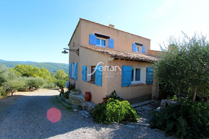 Nouveauté dans votre agence Ferran, cette villa de construction traditionnelle d'une surface habitable d'environ 200m² divisée en deux habitations vous offre une vue panoramique à couper le souffle. Vous trouverez une première habitation d'environ 130m² composée d'une véranda avec climatisation, d'une entrée, d'un salon / salle à manger de 40m², d'une cuisine indépendante équipée. L'espace nuit comprend trois chambres de 10, 12 et 13m² dont une avec salle d'eau / buanderie, un wc séparé et une seconde salle d'eau. En rez de jardin, vous aurez le plaisir de découvrir un appartement totalement indépendant d'environ 70m² avec séjour/cuisine américaine, deux belles chambres de 14 et 19m², une salle de bains et un wc. Le jardin entièrement clôturé de 1448 m² est complanté d'essences méditerranéennes, les oliviers et les restanques en pierre font de ce bien un vrai petit paradis provençal. Nombreux sont les atouts de cette superbe villa, piscine maçonnée de dimension 4x3 au chlore, portail automatique, portillon, cuisine d'été, cave, chaufferie de 30m², cabanons, quartier au calme total proche du village, vue époustouflante. Quelques travaux de rénovation sont à prévoir. Une belle opportunité à ne pas manquer. Bien proposé par Fanny BONZI, agent commercial RCS de DRAGUIGNAN n°909 663 379 Les informations sur les risques auxquels ce bien est exposé sont disponibles sur le site Géorisques : www.georisques.gouv.fr