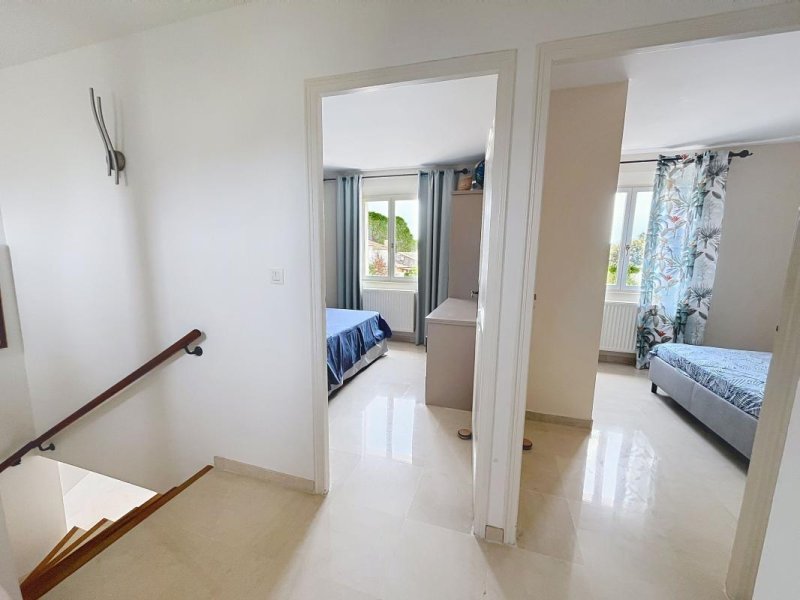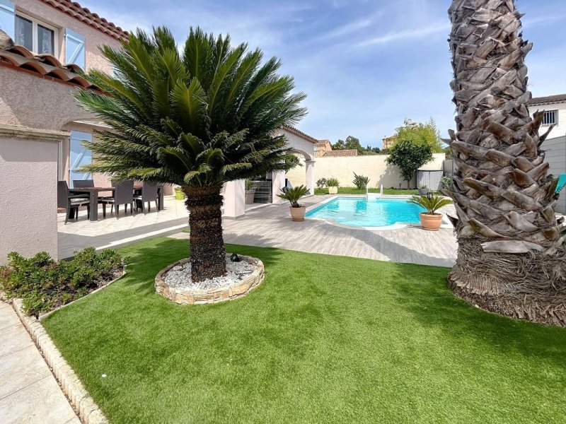 Votre agence immobilière ORPI vous propose à Fréjus Tour de Mare dans un quartier résidentiel et dans un domaine sécurisé, une très jolie Villa de 4 pièces avec piscine. Lumineuse , superbement entretenue et très bien agencée . Bel environnement au calme absolu. Un séjour exposé plein sud traversant, grande cuisine repas avec arrière cuisine et buanderie, une chambre avec salle de bain au RDC et 2 chambres en étage. Terrain paysagé, - Abri jardin, des terrasses . Agréable à vivre. Piscine 8X4 au sel. Aucun travaux à prévoir. Un visite d'impose !