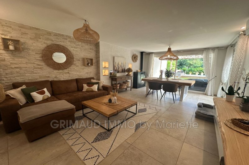 Dans domaine sécurisé avec piscine et tennis, au calme avec son jardin et piscine privé cette maison jumelée d'un côté de 84m² complétement rénovée avec des beaux matériaux se composant : hall d'entrée, wc d'invités, dressing, salon avec sa salle à manger, d'une cuisine équipée, d'une belle terrasse couverte donnant sur jardin orientée plein sud, et a l'étage deux chambres partageant une salle de douches. Parking pour deux voitures.