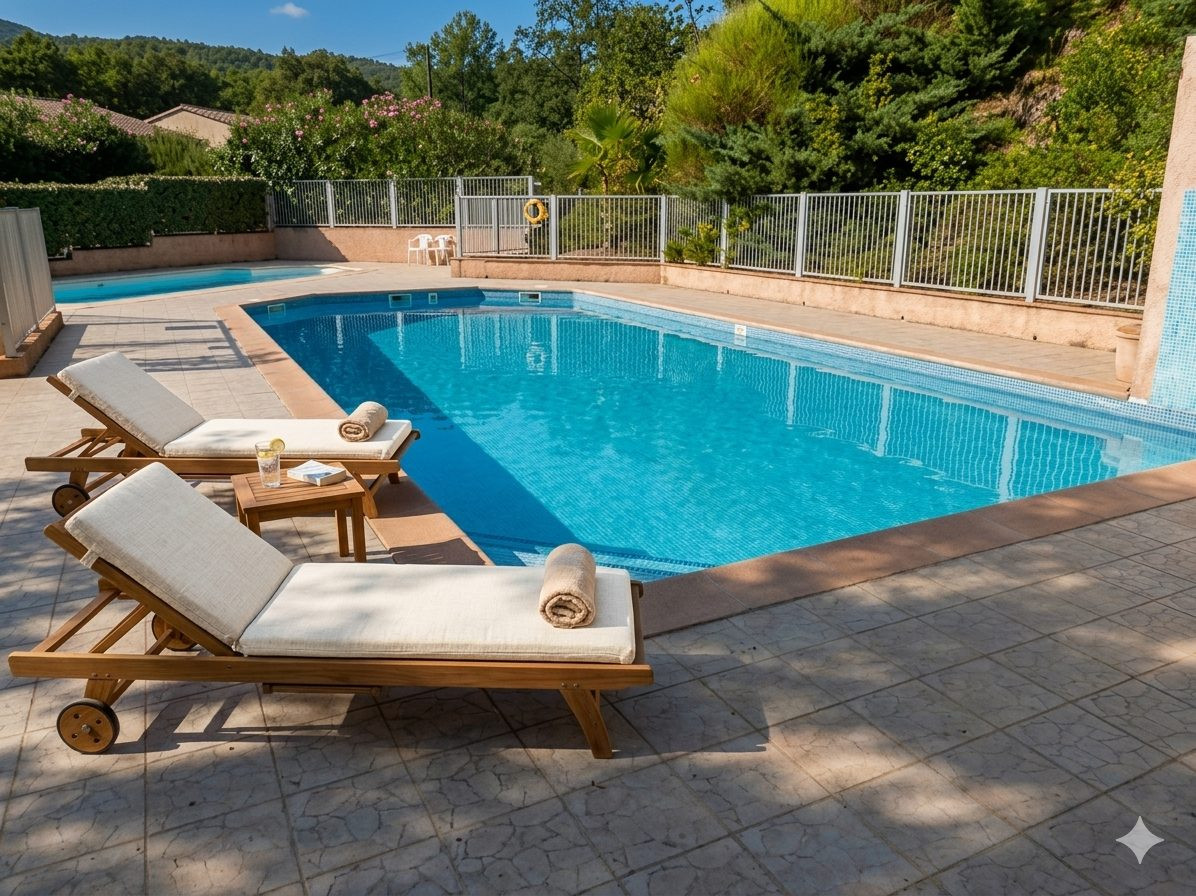 NOUVEAUTÉ ! Villa individuelle avec vue imprenable sur la chaine des Maures, dans un environnement calme et recherché, avec un accès piscine. Située au fond d'une impasse, au sein d'un charmant hameau en campagne, mais à proximité du village, cette ravissante villa individuelle d'environ 55 m² offre un cadre de vie paisible et privilégié. La maison bénéficie d'un agréable jardin exposé plein sud, d'environ 310 m², en jouissance privative, idéal pour profiter pleinement de la tranquillité des lieux. L'intérieur se compose d'une cuisine ouverte sur une belle pièce de vie lumineuse, créant un espace convivial et chaleureux. L'espace nuit propose deux chambres, dont l'une avec accès direct au jardin, une salle d'eau, ainsi qu'un WC indépendant. La pièce de vie s'ouvre, par une large porte-fenêtre, sur une agréable terrasse couverte, offrant une magnifique vue dégagée et donnant sur un jardin joliment aménagé, propice à la détente et aux moments de convivialité. La copropriété, soigneusement entretenue, met à disposition deux piscines sécurisées, un terrain de boules ainsi que divers aménagements de loisirs. Charges mensuelles : 80 La maison est équipée de double vitrage PVC et d'une climatisation réversible, assurant un excellent confort thermique et de réelles économies d'énergie. Ce bien rare sur le secteur conviendra parfaitement aussi bien pour une résidence principale, une résidence secondaire, que pour un investissement locatif offrant un excellent rendement. Les informations sur les risques auxquels ce bien est exposé sont disponibles sur : www.georisques.gouv.fr Pour plus d'informations ou organiser une visite : Cécile Poteau au 06.52.71.42.71 ou coteplace.cecile@gmail.com RSAC Draguignan n°797 943 974 Honoraires inclus de 5.33% TTC à la charge de l'acquéreur. Prix hors honoraires 225 000 . Dans une copropriété de 21 lots. Aucune procédure n'est en cours. Classe énergie D, Classe climat B. Les informations sur les risques auxquels ce bien est exposé sont disponibles sur le site Géorisques : georisques.gouv.fr.