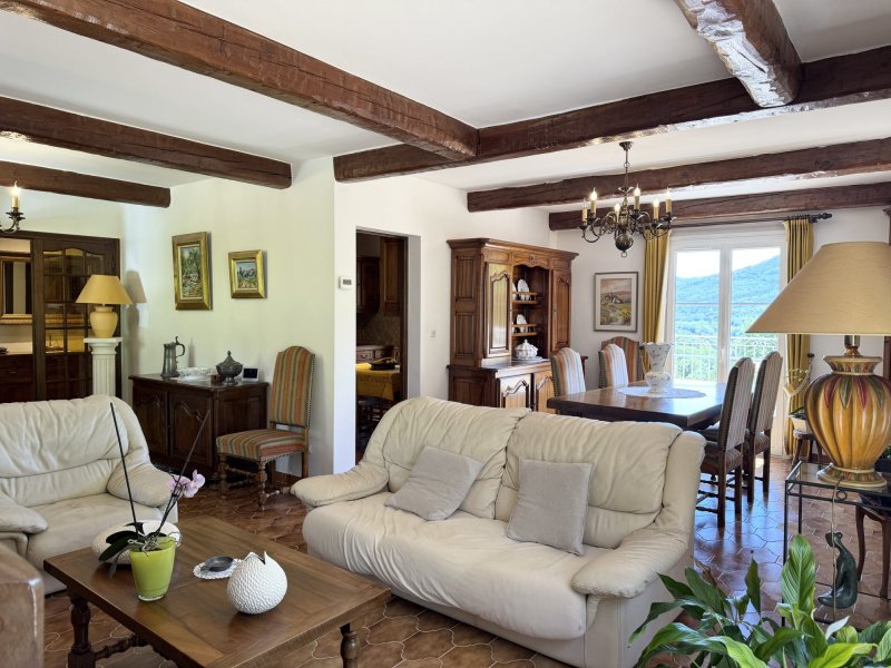 Votre agence immobilière, spécialiste de l'immobilier dans le Centre-Var, vous propose à la vente une villa avec vue panoramique à Gonfaron (Var) Dans le pittoresque village de Gonfaron, au coeur du Var, découvrez cette villa de charme en position dominante, offrant une vue panoramique exceptionnelle sur la plaine des Maures. Située sur les hauteurs, cette propriété s'étend sur une parcelle de 2 413 m² entièrement clôturée, dans un environnement calme et verdoyant. La villa, d'une surface habitable d'environ 113 m², se compose de : Un séjour lumineux, Une cuisine indépendante, Trois chambres, Une salle de bains, Un WC séparé. En rez-de-jardin, vous découvrirez un vaste sous-sol d'environ 60 m², comprenant un grand garage, une buanderie, ainsi que plusieurs espaces à aménager selon vos besoins (atelier, salle de jeux, bureau