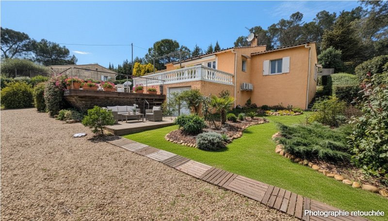 Votre agence immobilière, spécialiste de l'immobilier dans le Centre-Var, vous propose à la vente cette charmante villa de 118 m² habitables, offrant 5 pièces dont 3 chambres et un bureau, avec piscine, garage et terrasse. Edifiée de plain-pied sur un terrain de 1565 m², cette lumineuse villa T5 se compose : - d'un hall d'entrée - d'une pièce de vie d'environ 45 m² avec très belle hauteur sous plafond, larges ouvertures sur une terrasse exposée plein Sud, cheminée à insert et climatisation réversible - d'une cuisine récente ouverte, aménagée et équipée avec ilot central - de trois spacieuses chambres dont une climatisée - d'un bureau - d'une salle d'eau avec double-vasque - d'un toilette indépendant avec lave-mains - d'une buanderie / chaufferie À l'extérieur, le jardin légèrement en restanque et sans vis-à-vis est joliment aménagé : - d'un garage de bonne capacité permettant le stockage (accès peu pratique en voiture) - d'une terrasse carrelée d'environ 30 m² très bien exposée - d'une piscine de 7x3.5 mètres avec ses plages en bois avec volet roulant - d'un portail automatique - d'un coin potager - d'un arrosage automatique - d'un double approvisionnement en eau par l'eau de la ville et le forage - d'un assainissement collectif au tout-à-l'égout Cette maison bien entretenue sans travaux à prévoir est équipée d'une alarme, de fenêtres en PVC double-vitrage avec moustiquaires et d'une chaudière au fioul. Jouissant d'une belle vue dégagée, elle est située non loin du village et de ses commodités. La commune de Gonfaron dispose d'une gare desservant les gares de Les ArcsDraguignan, Toulon, Saint-Raphaël, facilitant vos déplacements régionaux. Les risques auxquels ce bien est exposé sont consultables sur le site officiel : www.georisques.gouv.fr Honoraires à la charge du vendeur. DPE en cours. Les informations sur les risques auxquels ce bien est exposé sont disponibles sur le site Géorisques : georisques.gouv.fr.