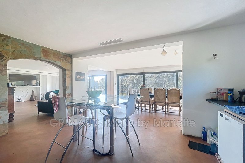 Au rez-de-chaussée, un garage et appartement composé d'un séjour avec cuisine, deux pièces et un cellier. Pour plus de biens, regardez sur notre site : www.grimaudimmo.com