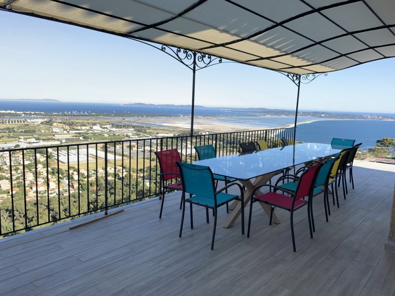 Sur les hauteurs de Hyères, découvrez cette maison individuelle avec vue imprenable sur Giens, le Tombolo et les Îles d'Or. Maison principale exposition Sud : 5 chambres dont suite parentale et chambre avec terrasse, 1 salle de bain, 2 salles d'eau, 2 WC, vaste séjour lumineux, cuisine familiale, grande terrasse plein sud. Annexes : 5 studios équipés + 1 T3, tous prêt à louer, forte rentabilité locative (precise sur demande) Extérieurs : terrain de plus de 1 300 m2, piscine XXL vue mer, plusieurs terrasses, stationnement 5 véhicules. Idéal pour famille, résidence secondaire ou projet locatif. Une visite s'impose pour découvrir cette adresse exclusive. Les informations sur les risques auxquels ce bien est exposé sont disponibles sur le site Géorisques : www.georisques.gouv.fr ROYAL IMMO, votre partenaire immobilier depuis 25ans, située au coeur du Mourillon, étudie votre projet immobilier sur toute l'aire Toulonnaise (Le Mourillon, Cap Brun, Port Marchand, Serinette, Petit Bois, La Mitre, Aiguillon, La Rode, Le Pont de Suve, Les Ameniers), ainsi que sur d'autres secteurs (Les Routes, Bon Rencontre, Le Pont du Las, Barbes, Claret, Le Bas Faron, Le Vert Coteau, La Loubière, Saint Jean du Var, Brunet...). L'agence se déploie également sur les communes environnantes de TOULON, comme, La Valette, La Seyne sur Mer, Ollioules, Sanary, Bandol, Six Fours Les Plages ... Toute cette implication sur ces secteurs, nous permet de vous proposer un large choix de biens en vente et en location, venez découvrir en agence toutes nos villas, maisons, appartements, terrains, place de parking, garage ou box, murs commerciaux... Nos conseillers immobiliers dédiés à la vente et à la location étudieront vos projets, qu'ils soient pour une première acquisition, une estimation de votre bien, un investissement locatif, ... nous mettrons tout en oeuvre afin de garantir le succès de votre projet.