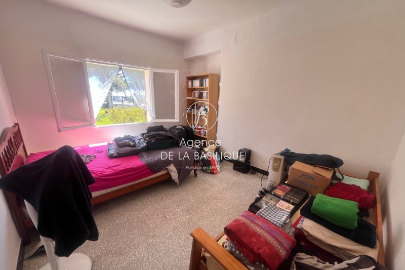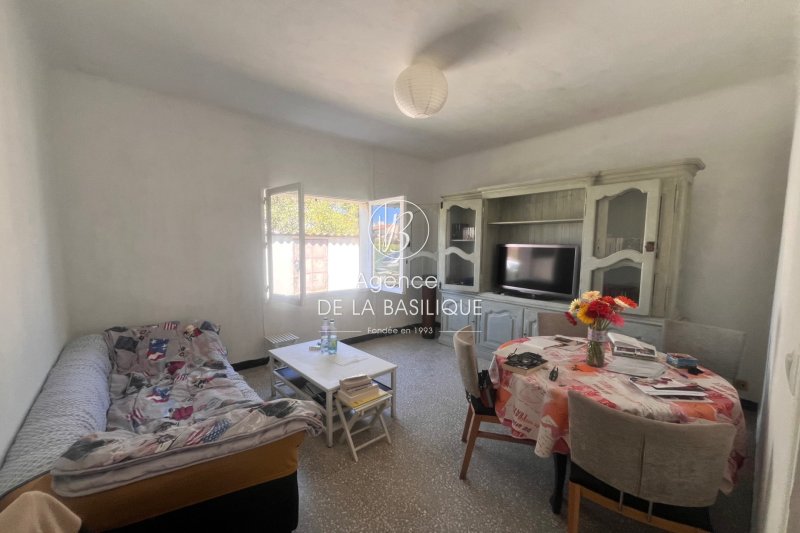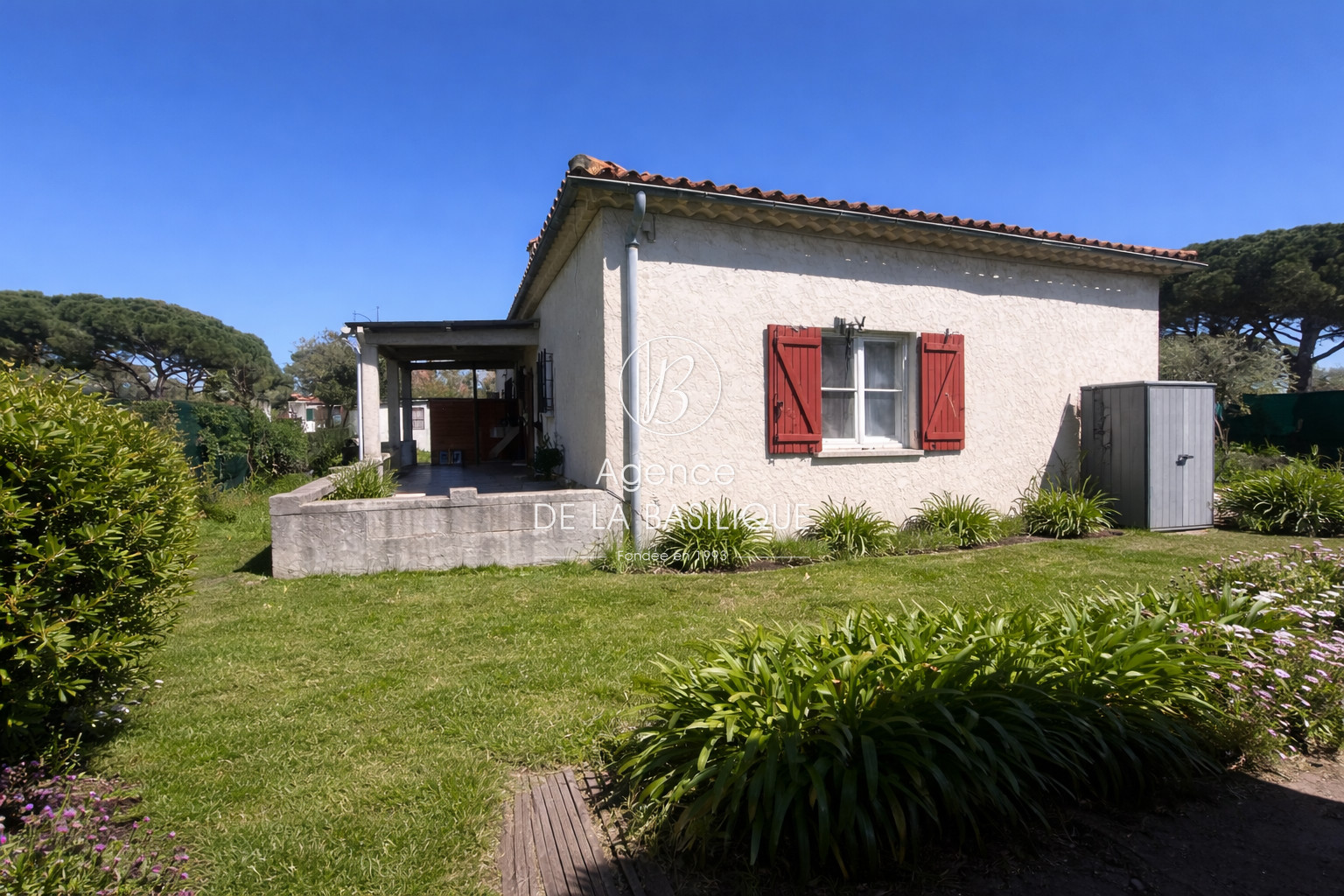 À deux pas de la plage des Salins, découvrez cette maison mitoyenne de type 3 d'environ 61 m² avec terrasse, jardin d'environ 220 m² et vue mer.