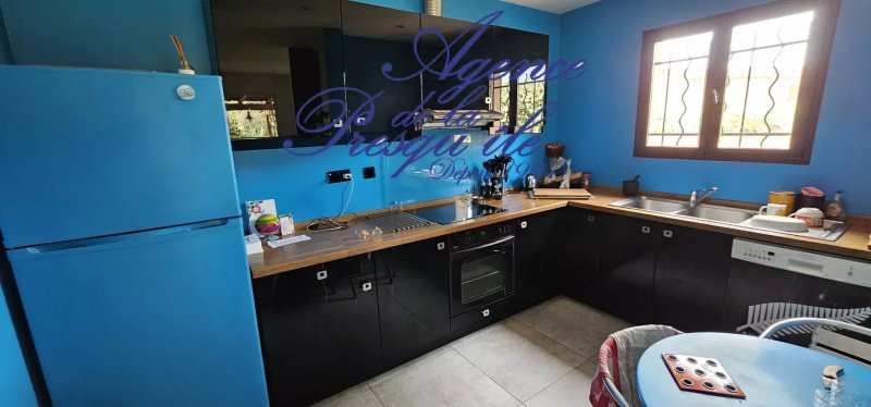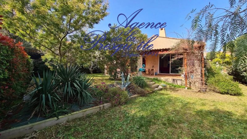 Presqu'ile de Giens, à 800m du village et des plages, maison (103m²) de plain-pied, sur environ 600m² de terrain, se composant d'une grande pièce à vivre, cuisine ouverte, 3 chambres, 1 salle d'eau, wc séparé, un cellier, une cave. Grande terrasse couverte.