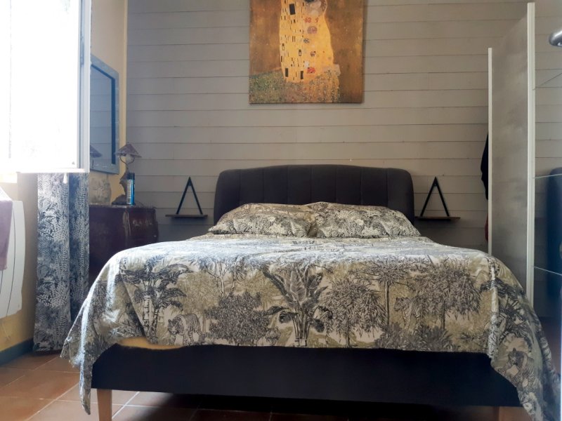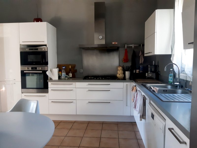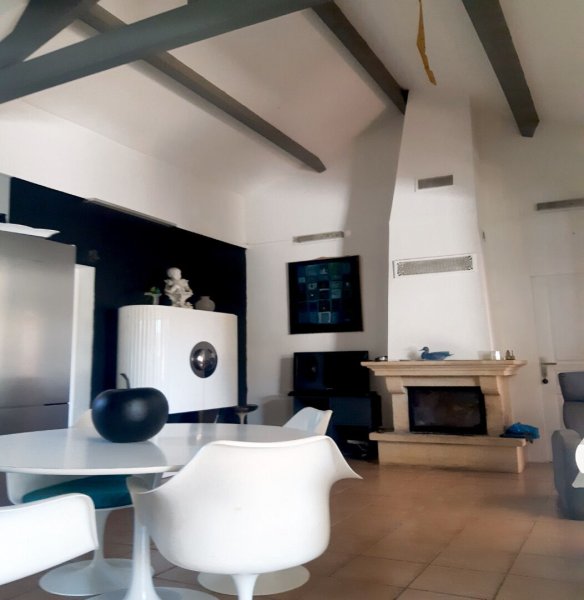 le salon avec son plafond rampant ( belle hauteur de plus de 4 m ) est agrémenté par une cheminée, la cuisine américaine, deux belles chambres, un dressing ou bureau, deux salle d 'eau, deux wc, et un cellier vous apportent un vrai confort de vie .