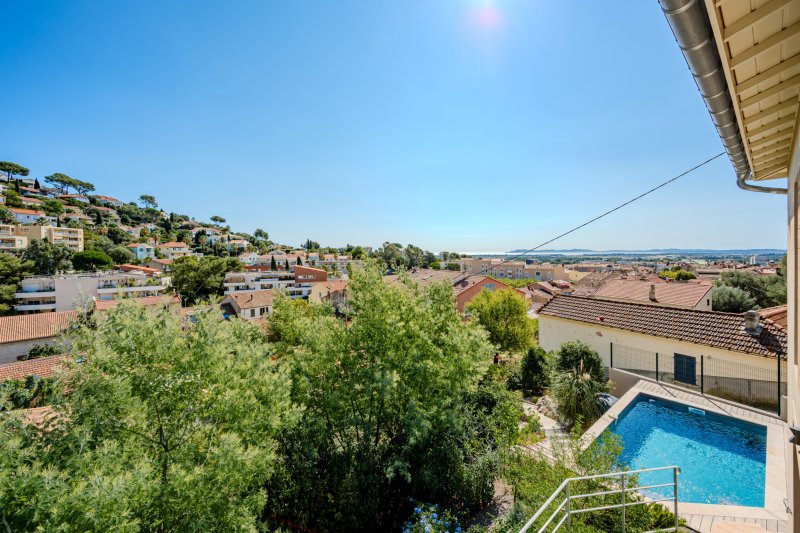 Hyères, nichée au coeur du quartier très recherché de la villa Noailles, cette villa aux allures modernes de 155m2 conjugue élégance, sérénité et proximité du centre-ville accessible à pied. Conçue avec un soin particulier, elle s'ouvre sur une entrée qui dessert le premier niveau comprenant deux chambres de 18m2 et 26m2, chacune dotée de leur propre salle d'eau profitent d'une vue dégagée. Un WC indépendant ainsi qu'un garage de 17m2 viennent compléter ce niveau. Au rez-de-chaussée un vaste séjour de 47m2 baigné de lumière, sublimé par une cuisine ouverte et de larges baies vitrées donnant sur une terrasse et un jardin paysager agrémenté d'une piscine. La suite parentale, véritable cocon de 28m2, bénéficie d'une salle d'eau privative avec dressing. Edifiée sur un terrain de 744m2 entièrement clos et arboré, cette propriété se démarque par la qualité de ses aménagements et de son emplacement privilégié. Elle bénéficie de frais de notaire réduits ainsi que la garantie décennale , gages de sérénité pour ses futurs propriétaires. Cette annonce vous est proposée par LE BOULAIRE Astrid - EIRL - NoRSAC: 894567270, Enregistré au Greffe du tribunal de commerce de TOULON