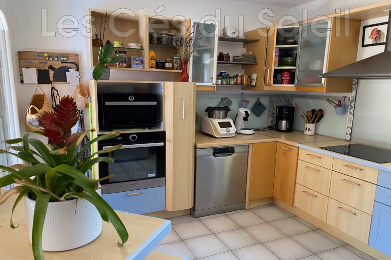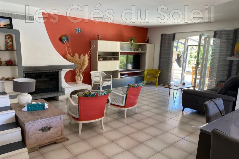 Au c½ur d'un Lotissement très prisé, proche plage et ville, agréable maison individuelle d'environ 100m², composée d'un double séjour, cuisine us aménagée et équipée, sur terrasses, en demi niveau 2 chambres avec placards dont une avec son solarium, salle d'eau+ wc, un toilette indépendant avec lave mains, au 1er étage chambre avec solarium, combles.