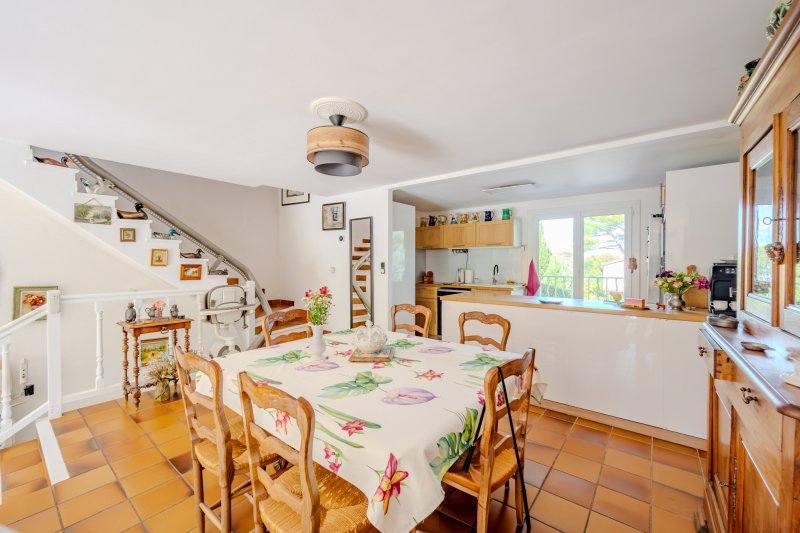Sur les hauteurs verdoyantes et très prisées de Costebelle à Hyères, offrant un cadre de vie naturel et paisible, venez découvrir cette maison mitoyenne d'environ 90m2 avec son jardin de plus de 100m2. Au premier niveau, vous trouverez un vaste séjour traversant de 45m2 comprenant salon, salle à manger et cuisine ouverte donnant accès à une agréable terrasse de 35m2 parfaite pour profiter des repas en extérieur ou de moments de détente. Un cellier ainsi que des WC complètent cet étage. A l'étage supérieur, la partie nuit se compose de trois chambres, dont deux bénéficiant d'une vue imprenable sur la verdure, d'une salle d'eau, de WC séparés et d'un vaste espace de rangement. En rez-de-chaussée, la maison dispose d'un garage, d'une buanderie et d'une seconde salle d'eau avec toilettes. Le tout est édifié sur une parcelle facile d'entretien d'environ 150m2. Son emplacement idéal à proximité des plages de l'almanarre, des transports, des écoles tout en offrant un environnement verdoyant et un cadre de vie agréable. Cette annonce vous est proposée par LE BOULAIRE Astrid - EIRL - NoRSAC: 894567270, Enregistré au Greffe du tribunal de commerce de TOULON