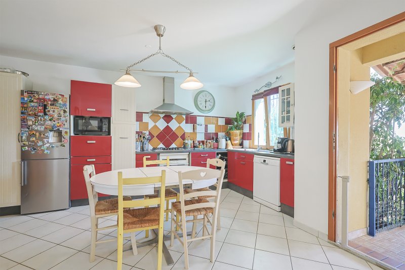 Maison avec vue imprenable Exposition plein sud, quartier calme Sur les hauteurs, dans un environnement paisible tout en restant proche de toutes les commodités, découvrez cette charmante maison offrant une vue panoramique dégagée sur la mer et les iles. Elle se compose d'un salon-séjour lumineux avec cuisine ouverte, de deux chambres confortables, ainsi que d'un studio indépendant accolé, idéal pour accueillir famille, amis ou pour un projet locatif. À l'extérieur, une très grande terrasse plein sud vous permettra de profiter du soleil et de sa vue dégagée sur la plaine et la mer. Un garage de 18 m2 et une place de parking privée complète ce bien. Atout rare : possibilité de surélévation pour créer un étage complet, offrant un potentiel d'agrandissement considérable. Points forts Vue mer dégagée et exposition plein sud Quartier résidentiel calme, à proximité immédiate des commerces et services Grand potentiel d'évolution avec extension possible DELUILLE NicolasADC 8306 2024 000 000 111488 053 091 RSAC Toulongan 3158 9874 2000