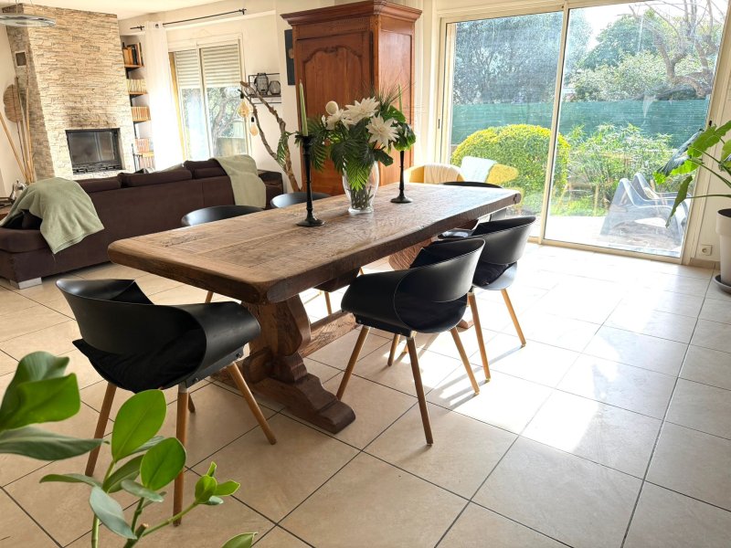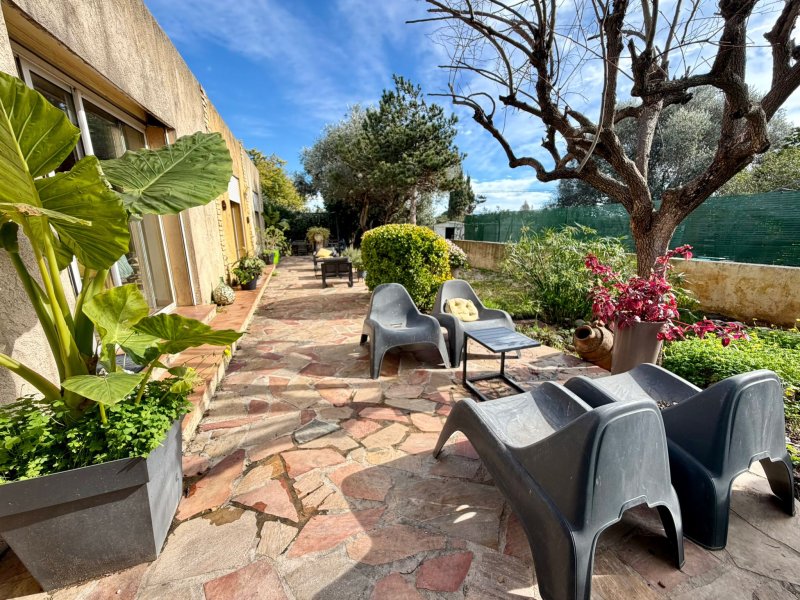 Villa architecturale de plain-pied Proche commodités Découvrez cette villa de plain-pied à toit plat, offrant un beau potentiel après travaux de rafraîchissement. Elle se compose de 3 chambres lumineuses, d'un salon spacieux de 45 m2 avec cuisine ouverte, idéal pour un espace de vie convivial. Une salle d'eau avec WC ainsi qu'un WC indépendant complètent l'ensemble. À l'extérieur, vous profiterez d'un jardin plat faisant le tour de la villa. À proximité immédiate des commerces, le centre-ville de Hyères est accessible en 10 minutes en bus. Des travaux de rafraîchissement sont à prévoir, offrant une belle opportunité de personnalisation. Les + : suite parentale, cheminée, piscine semi-enterrée, garage, stationnements extérieurs.