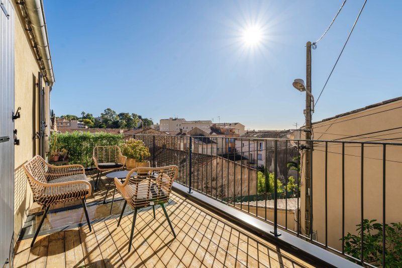 EN EXCLUSIVITÉ JCG IMMOBILIER ET NULLE PART AILLEURS ! HYÈRES : nous sommes fiers de vous présenter cette nouvelle maison de ville ENTIÈREMENT RÉNOVÉE T4 de 120m2 habitables avec terrasse et cour. La maison est idéalement située au pied du quartier Paradis dans un secteur très calme, proche des écoles et à seulement 250m de la place Clemenceau. Elle est élevée d'un étage sur rez-de-chaussée et se compose : -au rez-de-chaussée, d'une belle véranda, d'un vaste séjour / cuisine US équipée, d'un cellier / WC, d'une loggia / buanderie et d'une cour. -à l'étage, d'un dégagement, de 3 chambres dont une avec dressing et les deux autres avec accès à une terrasse PLEIN SUD, d'une salle d'eau et d'un WC. La maison est équipée de menuiseries en double vitrage aluminium, de volets roulants électriques, de volets battants en aluminium, de BSO (brise-soleil à lames orientables), de climatisations réversibles. Elle est raccordée à l'eau de ville, au tout-à-l'égout, à la fibre et au gaz de ville pour la plaque de cuisson et la production d'eau chaude sanitaire. L'isolation a été refaite récemment et la maison est classée en B et présente une consommation énergétique très faible. IMPORTANT : possibilité d'acquérir en sus un garage et une place de parking couverte à quelques centaines de mètres de la maison. Taxe foncière 2025 : 1360EUR. Les informations sur les risques auxquels ce bien est exposé sont disponibles sur le site Géorisques : www.georisques.gouv.fr ALLIOU Robin Carte de collaborateur noADC83062024000000144 Immatriculé au RCS sous le no 819 826 561 RSAC Toulon No de police d'assurance Allianz No 57612747