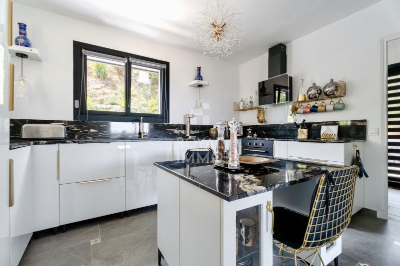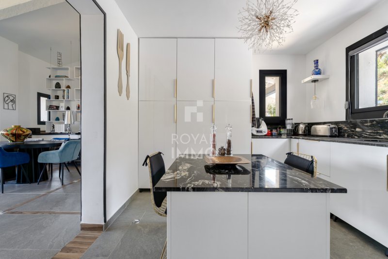 Située dans le secteur prisé de Costebelle à Hyères, cette magnifique maison individuelle en construction traditionnelle entièrement rénovée offre des prestations haut de gamme et une vue mer et montagne totalement dégagée, sans aucun vis-à-vis. Caractéristiques principales : Surface habitable : 194 m2 Surface totale au sol : 271 m2 Terrain : 1500 m2 Terrasses : plus de 40 m2 avec vue panoramique Grande cave d'environ 40 m2 Maison sur vide sanitaire, entièrement isolée Disposition des lieux : Maison principale : Séjour lumineux de plus de 45 m2 4 chambres, dont 3 suites parentales avec salle d'eau privative (3 de plain pied et une au niveau rez de jardin) T2 indépendant avec son entrée au rez de jardin : environ 50m2, totalement équipé, avec terrasse et vue mer/montagne Atouts majeurs : Rénovation complète et récente : maison comme neuve Système de chauffage et climatisation performant Double vitrage et volets roulants électriques Mini-piscine pour se détendre avec vue panoramique Stationnement pour plusieurs véhicules Vue mer et montagne totalement dégagée, aucun vis-à-vis Cette propriété est idéale pour une famille ou pour un projet de résidence principale avec revenus locatifs grâce aux appartements indépendants. Contactez-nous dès maintenant pour organiser une visite et découvrir ce bien unique. Les informations sur les risques auxquels ce bien est exposé sont disponibles sur le site Géorisques : www.georisques.gouv.fr ROYAL IMMO, votre partenaire immobilier depuis 25ans, située au coeur du Mourillon, étudie votre projet immobilier sur toute l'aire Toulonnaise (Le Mourillon, Cap Brun, Port Marchand, Serinette, Petit Bois, La Mitre, Aiguillon, La Rode, Le Pont de Suve, Les Ameniers), ainsi que sur d'autres secteurs (Les Routes, Bon Rencontre, Le Pont du Las, Barbes, Claret, Le Bas Faron, Le Vert Coteau, La Loubière, Saint Jean du Var, Brunet...). L'agence se déploie également sur les communes environnantes de TOULON, comme, La Valette, La Seyne sur Mer, Ollioules, Sanary, Bandol, Six Fours Les Plages .