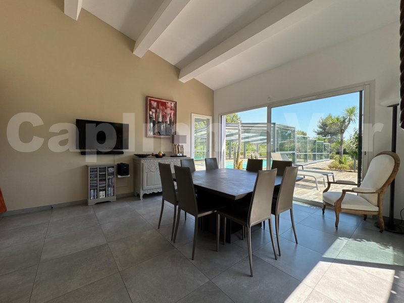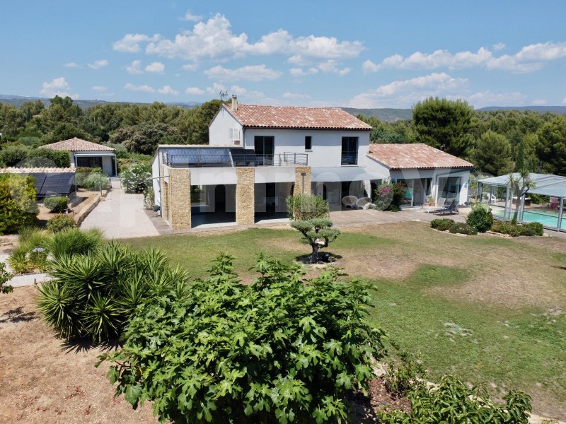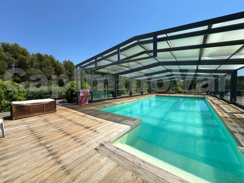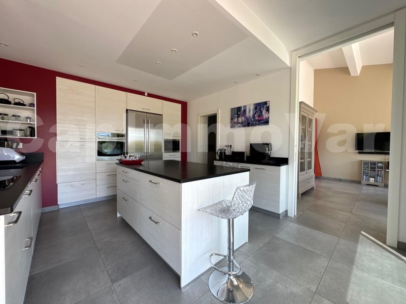LA CADIERE D'AZUR - Située dans un environnement préservé, cette maison familiale de type 7 développe 232,50 m² habitables sur un terrain paysager de 5 000 m². Conçue en 2013, elle offre un équilibre harmonieux entre espaces intérieurs généreux, circulation fluide et ouverture vers l'extérieur. La pièce de vie principale, baignée de lumière, s'organise autour d'un salon, d'une salle à manger et d'une cheminée. La cuisine indépendante communique avec une arrière-cuisine fonctionnelle et donnant accès à un immense sous-sol. Le rez-de-chaussée accueille également un bureau et trois suites avec salle d'eau, dont une avec accès direct à la piscine. A l'étage deux autres suites, dont une suite parentale avec dressing, salle de bains et terrasse avec vue. En annexe un sous-sol de 122 m² permet le stationnement jusque 6 véhicules. À cela s'ajoutent 55 m² d'annexes à hauteur d'homme comprenant cave, atelier et une chambre indépendante avec salle d'eau. Sur la parcelle, un logement T3 climatisé et totalement indépendant de 48 m² complète l'ensemble. Il dispose de son propre accès, son espace extérieur, d'une piscine privée et d'une pergola. La villa principale bénéficie également de sa propre piscine fermée et sécurisée, au c½ur d'un jardin paysagé et d'un grand potager. Un lieu rare, pensé pour accueillir confortablement famille et proches, ou envisager un projet d'accueil ou locatif, dans un cadre naturel et calme.