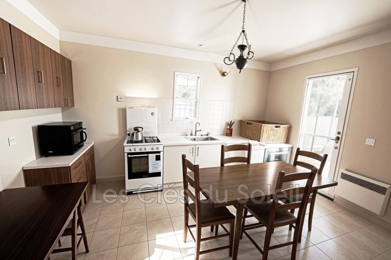 Située dans une zone tranquille avec des commodités accessibles en cinq minutes seulement, cette charmante maison individuelle de plain-pied présente un style de construction traditionnel. Elle offre un spacieux séjour de 30m² qui donne accès à une agréable terrasse, ainsi qu'une cuisine indépendante aménagée disposant également d'un accès à la terrasse pour un espace repas extérieur. La propriété compte trois chambres, dont deux sont dotées de placards pour faciliter le rangement. Un hall de dégagement avec des placards supplémentaires, une salle de bains et des toilettes indépendantes complètent l'aménagement de l'intérieur. Un garage est également à votre disposition. L'extérieur comporte une piscine pour profiter des belles journées ensoleillées. Le tout repose sur un terrain plat et entouré de verdure. L'exposition sud-ouest de la propriété assure un ensoleillement optimal tout au long de la journée et une vue dégagée pour profiter du cadre exceptionnel. La maison atteint un confort thermique optimal grâce à un chauffage par climatisation réversible. Elle requiert quelques travaux de rafraîchissement pour exploiter au maximum son potentiel. Construite en 1994, elle est revêtue d'un enduit écrasé et couverte de tuiles. L'état général de l'extérieur est bon. L'assainissement est connecté au tout-à-l'égout. Le double vitrage assure une excellente isolation thermique et acoustique. Son emplacement assure calme et sérénité.